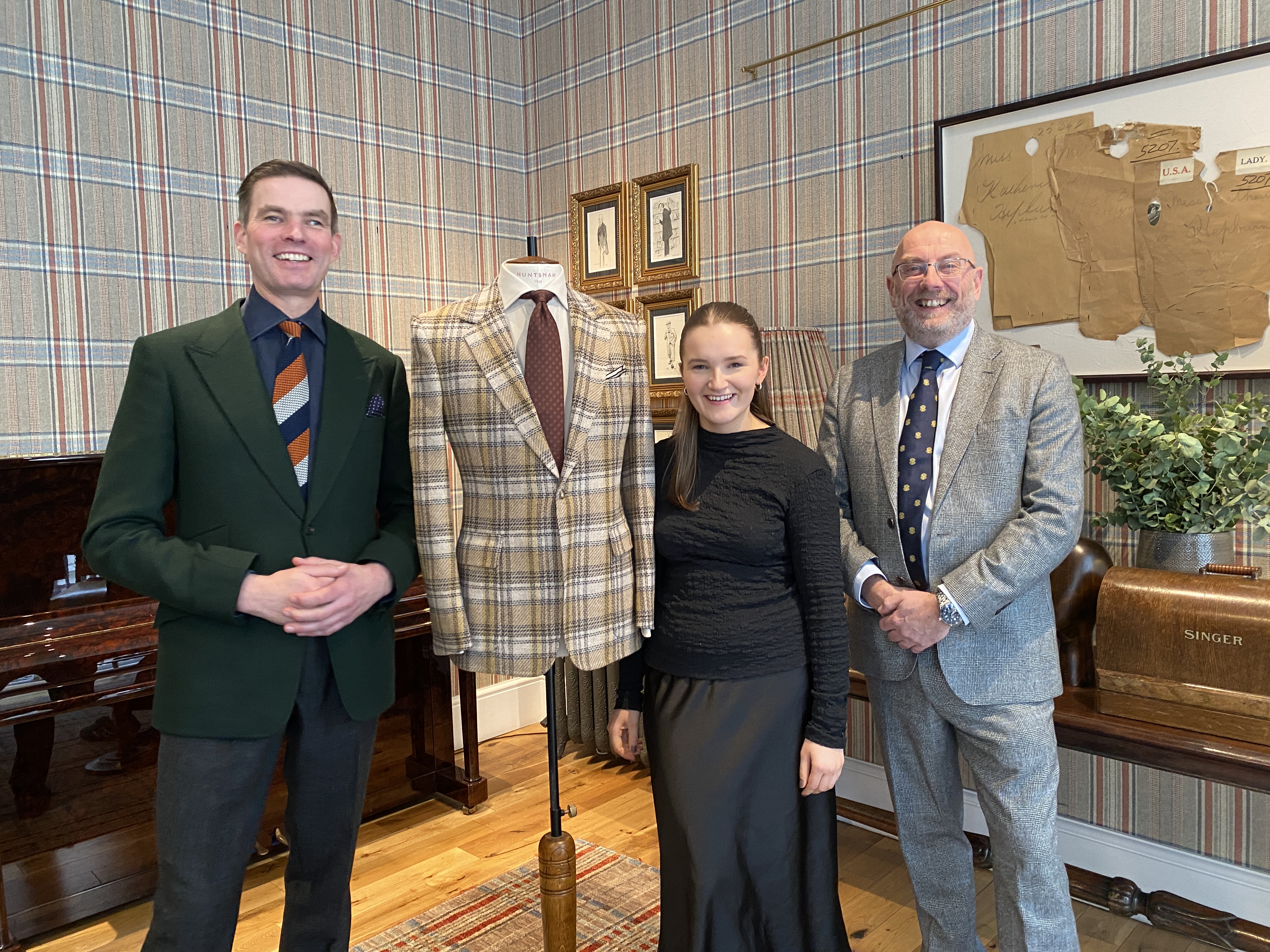 A textile design student from the north east of Scotland is celebrating after making an early career debut on Savile Row, London’s famous luxury tailoring street.