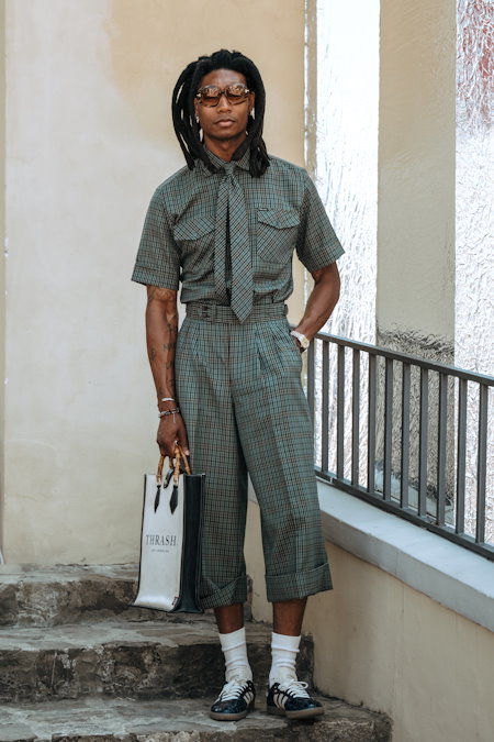 Tailored shorts which began to emerge at the last summer edition (Pitti 106) were in evidence once again - replacing their trousered cousins to combat the cauldron of heat while still remaining sartorially resplendent. And if you’re young enough to pull it off, it was a look often paired with knee-length wrinkled socks - Nora Batty would’ve approved.